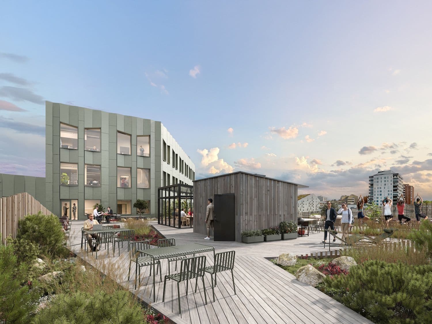 Ta en digital rundtur och upplev Olivins balanserade arbetsmiljö. Utforska ljusa entréer, smart planerade kontorsytor och gröna takterrasser som främjar både fokus och avkoppling. Se hur Olivin kan bli er nya arbetsplats.